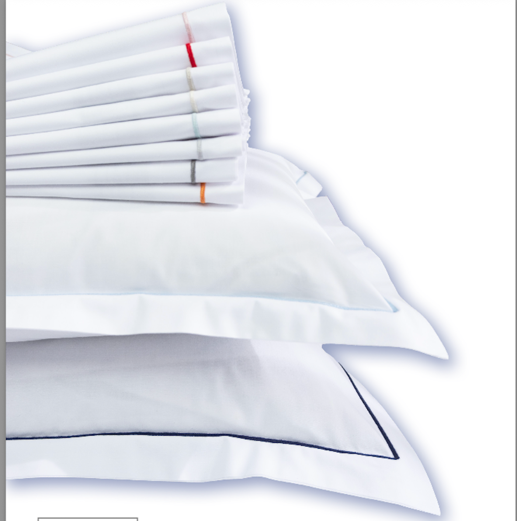 This Crisp grand hotel quality sheeting 100% long staple cotton that is woven into 200 thread count crisp white percale. Our artisan embroiderers embellish flat sheets, pillow shams & duvet covers with one row of satin stitch. Twin Sheet set is composed of 1 twin flat, 1 twin fitted and 1 pair of standard pillowcases. Queen Sheet sets compose of one queen flat , 1 queen fitted and 1 pair of standard pillowcases. The king sheet set composes of 1 king flat, 1 king fitted and 1 pair of king pillowcases. The Twin duvet set is composed of 1 twin duvet cover and 1 standard sham. The queen duvet set is composed of 1 queen duvet embroidery U shape of top of bed, 2 standard shams with embroidery on 4 sides. The king duvet set is composed of 1 king duvet cover and 2 king shams. 100% Woven, Cut and sewn in Florence Italy.